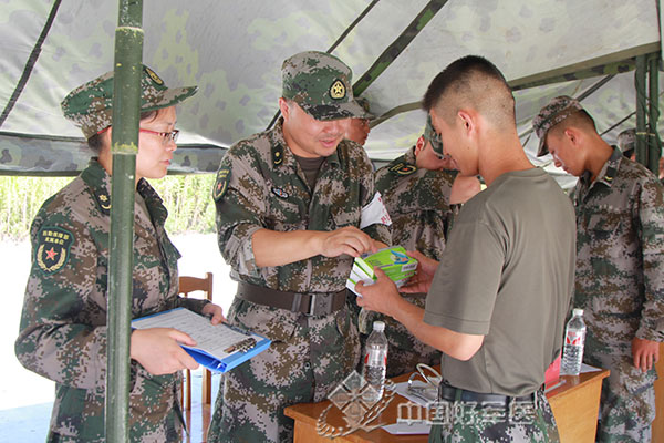 随后,专家们步行二十余分钟,来到某船艇运输大队进行上艇巡诊,在船艇指挥室,专家们与该大队官兵进行健康座谈,帮助他们答疑解惑,并进行专业诊疗。一直忙到了下午5点,前来咨询就诊的官兵依然络绎不绝,临走之前,医疗队还留下了各种预防和治疗因海训任务引发的各种疾病药品。