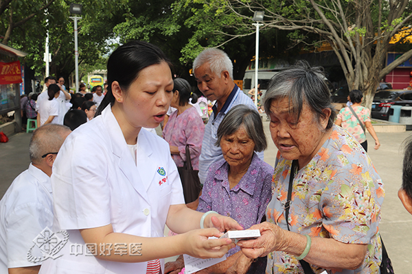 武警广东省总队医院的义诊专家组摆摊设点展开工作
