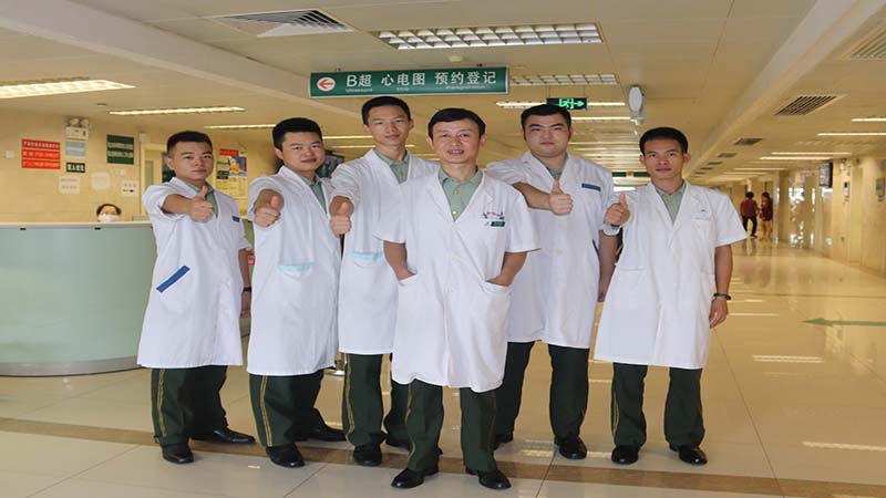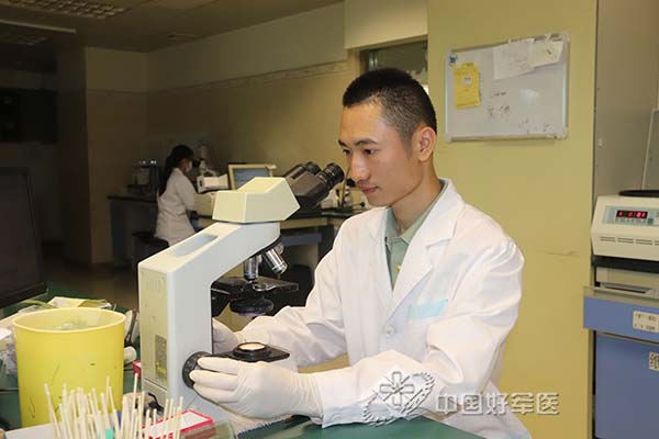 检验科是承担了包括病房、门急诊病人、各类体检以及科研的各种人体的检测工作。是让病人可以得到确切诊断的依据,在这里实习的有汕头支队的段君正、河源支队陈海斌、潮州支队李用、揭阳支队潘文杰、梅州梁富、汕尾支队赵彦。图为检验科副主任罗建祥带领进修生工作。