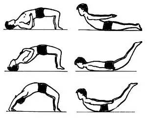 仰卧在床上,屈膝,双肘部及背部顶住床,腹部及臀部向上抬起,依靠头、双肘和双脚五点支撑起整个身体的重量,持续3~5秒,然后放松腰部肌肉,放下臀部休息3~5秒。