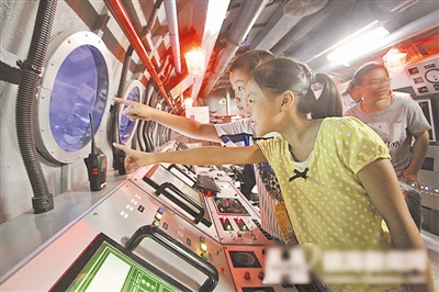 孩子们喜欢这里,不光是能看历史,驾潜艇、开飞机、操作航母这些梦想中的事情,在博览园的军事体验区也可以实现。参观者可以体验潜艇、飞机、航母的模拟器,当一回艇长、机长、舰长,甚至可以体验开飞机看镇海全貌、驾驶舰船乘风破浪。“太过瘾了,等我将来考大学就要报考空军院校,当一名空军飞行员。”一名初中生在体验完后对记者说。