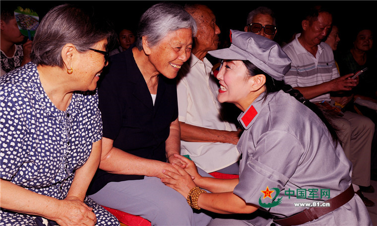 红色歌唱队的志愿者现场采访两位女八路,现场互动、真实感人。