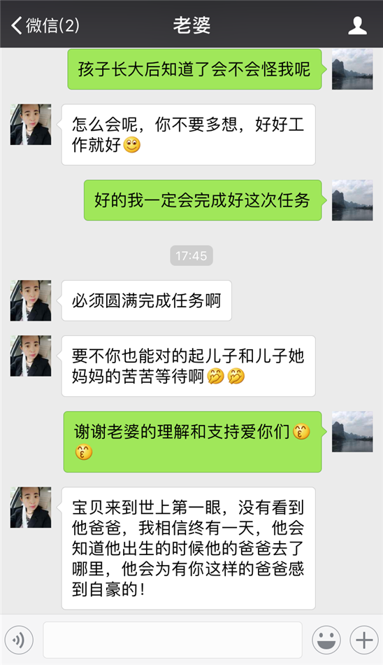妻子董彦俊(孝敬老人的好军嫂):宝贝来到世上第一眼,没有看到他爸爸,我相信终有一天,他会知道他出生的时候他的爸爸去了哪里,他会为有你这样的爸爸感到自豪的!