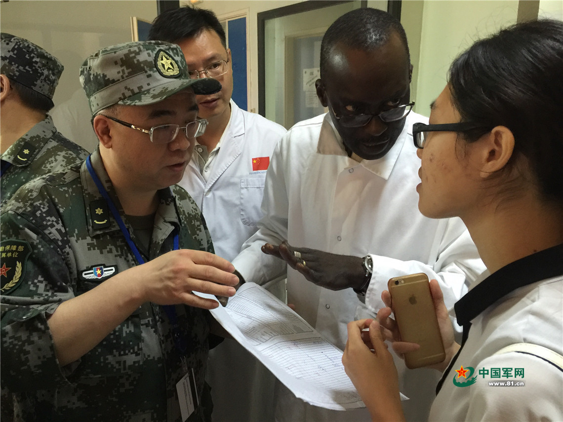 救援我维和战士期间,和医护人员了解情况。