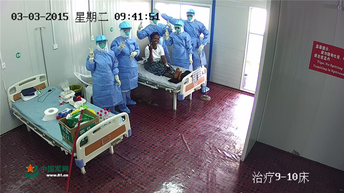 在利比里亚所救治的埃博拉病人恢复(医疗区视频影像截图)。