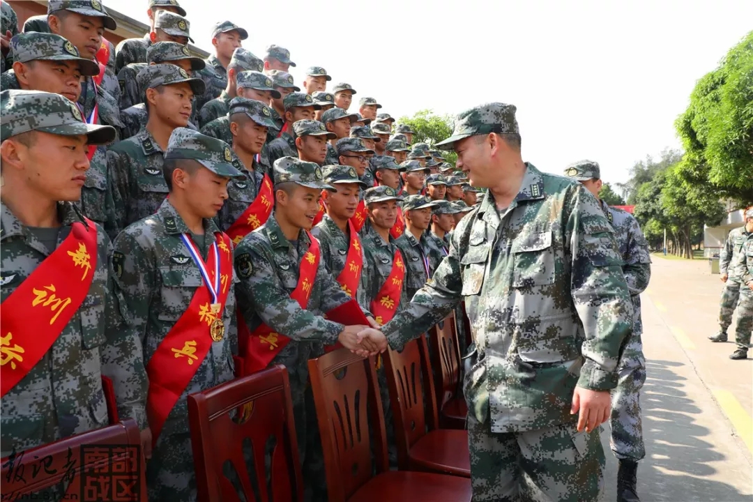 该基地领导与直招士官握手祝贺。