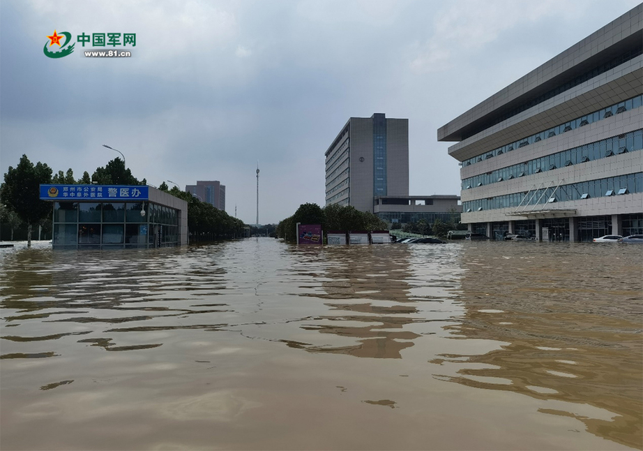 医院坐落于郑东新区象湖之滨,贾鲁河畔,因地势低洼,河湖漫溢,在此次特大暴雨中受灾严重,近5000名医患群众被困诊疗大楼,在停水停电停网的漆黑雨夜,这幢19层的庞然大物犹如海中孤岛,急迫等待救援。曾经繁忙的医院广场,涉水深度1.5米左右,目之所及皆是一片泽国。