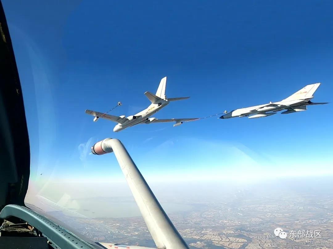 近日,东部战区空军航空兵某团按计划开展空中加油训练。
