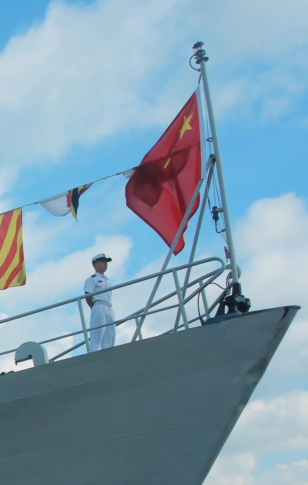 丹东舰降下军旗,完成使命任务
