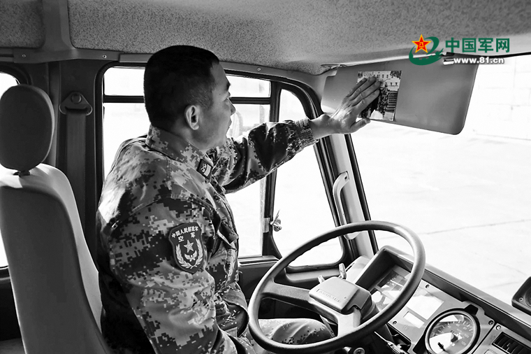 齐达抚摸驾驶室内的全家福。