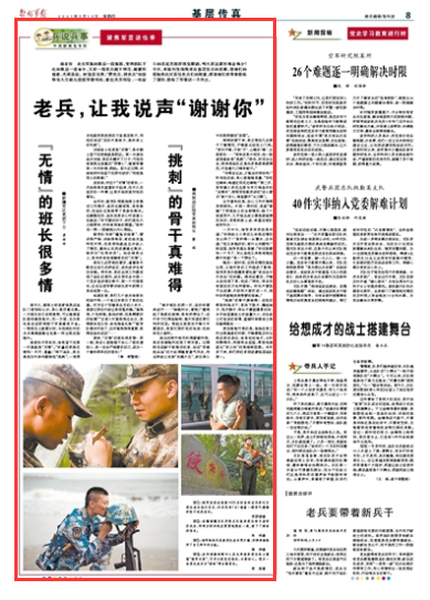 “挑刺”的骨干真难得!在他的帮助和指点下,我放下架子、撸起袖子、甩开膀子,带头干最脏最累的活,并开始留意战士的饭量大小,关注战士打电话的表情,查铺时细看战士是否睡得踏实……