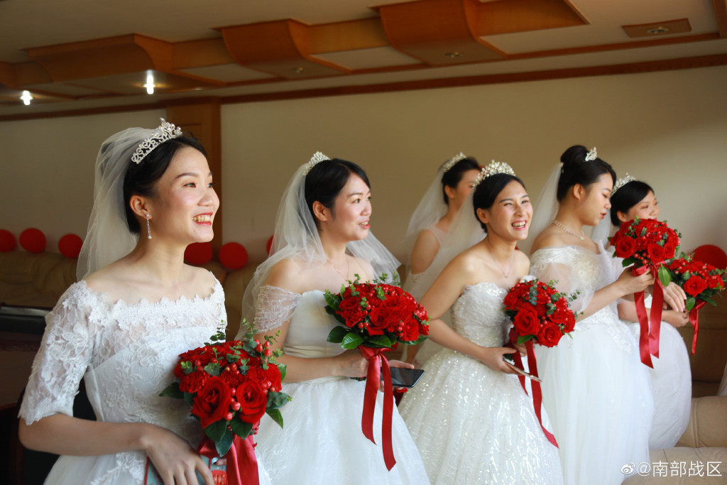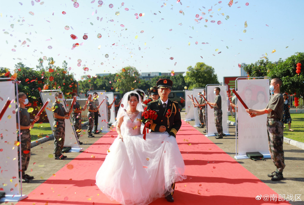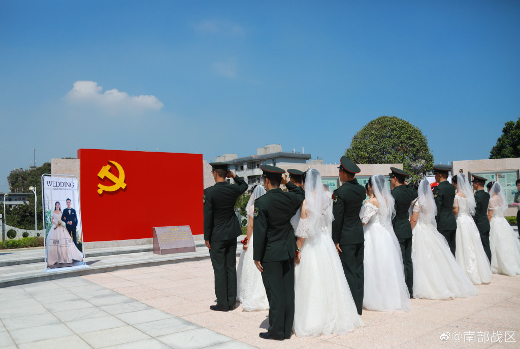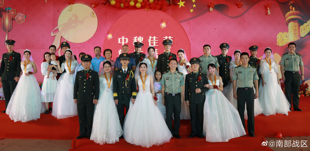 中秋节,正是花好月圆之时,一场为9对新人量身定制的“情定军营,相守一生”集体婚礼,在南部战区陆军某综合训练基地举办。好男儿参军报国,好姑娘情定军营,婚纱白与橄榄绿交相辉映,浪漫与忠诚完美交融,让我们一起去婚礼现场看看吧!(王黎明 于子皓 李森 杜智明 吕广远 严伟星 李迅)