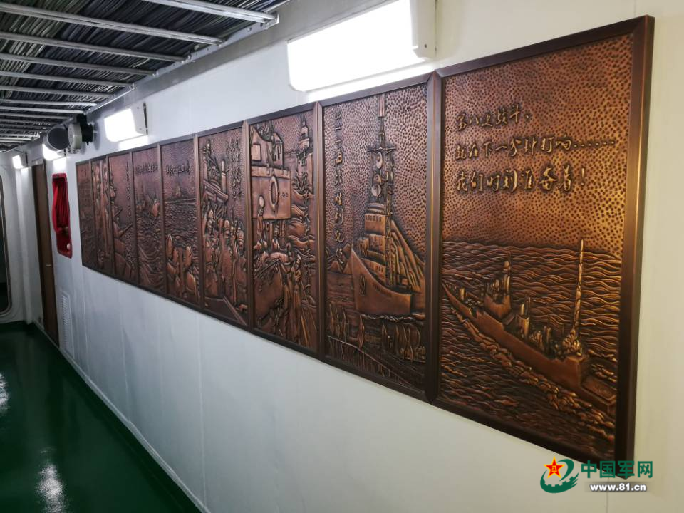 甫一登舰,右舷通道内侧的一组铜塑,更让人血脉偾张——