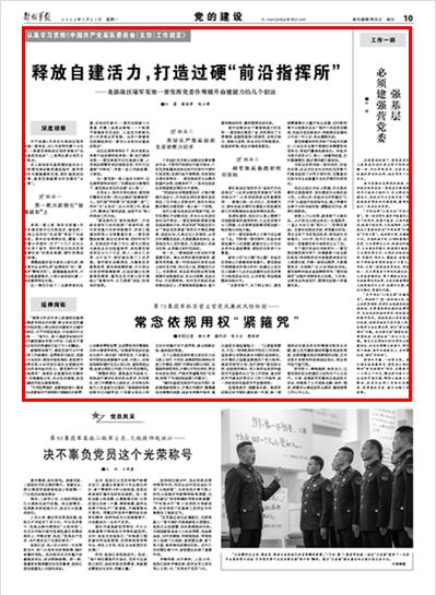 在上级组织的基层建设座谈会上介绍营党委动散抓建经验时,教导员陈笑农感触最深的是,部队越是动态分散,基层党委越要当好自建的“主心骨”。