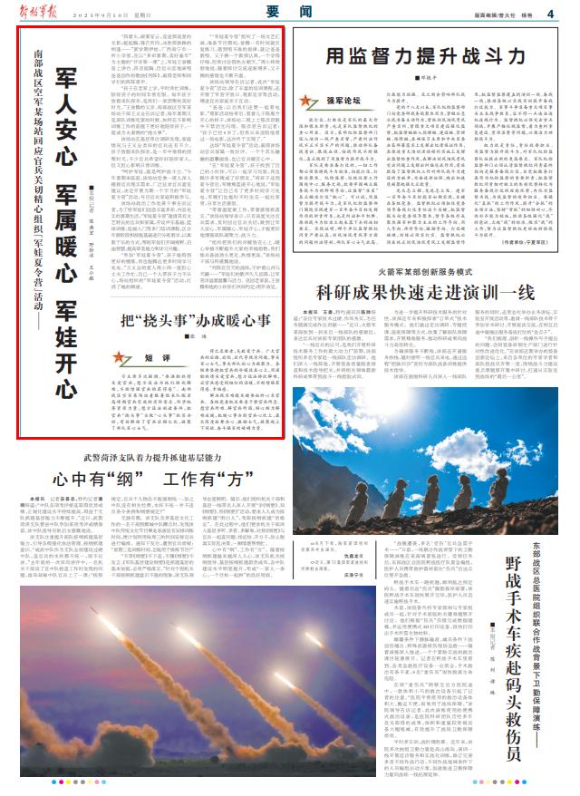 “带着温度做工作,带着感情抓落实。”该场站领导表示,只有高度关注官兵需求、及时回应官兵关切,做到让军人安心、军属暖心、军娃开心,才能更好地增强部队凝聚力、战斗力。