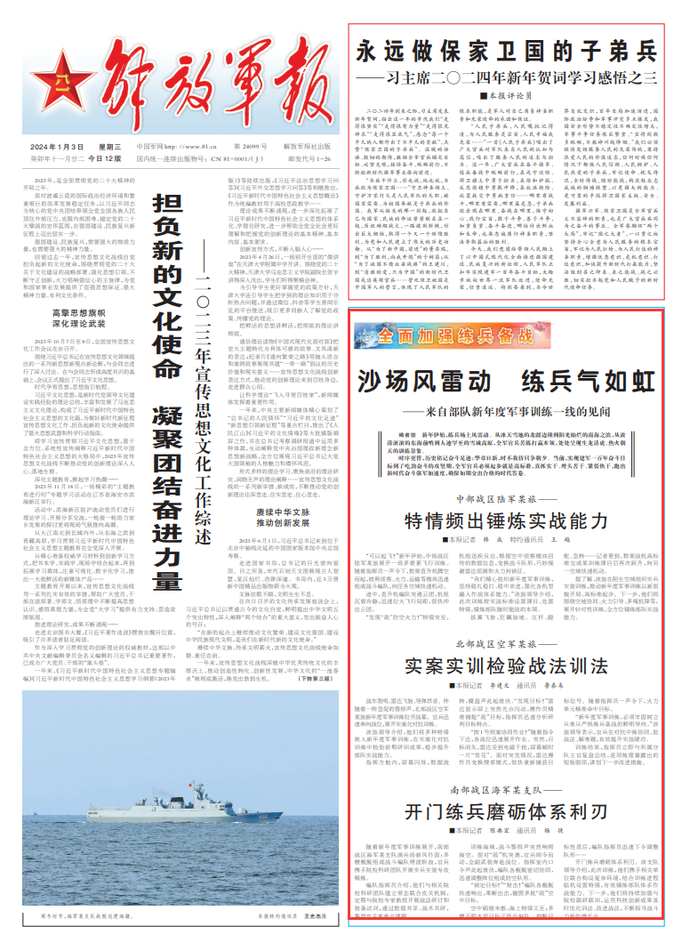 编者按 新年伊始,练兵场上风雷动。从冰天雪地的北疆边陲到阳光灿烂的南海之滨,从波涛滚滚的东海前哨到人迹罕至的雪域高原,全军官兵苦练打赢本领,处处呈现生龙活虎、热火朝天的训练景象。