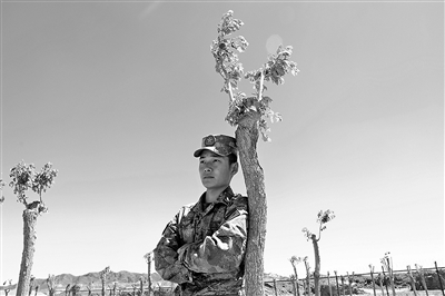 春天到了,王子洋也有了自己的“成长树”。每隔一段时间,王子洋都要给自己栽种的那棵树浇水、培土。望着看上去尚有几分孱弱的小树苗,王子洋暗暗在想,它真的能在这干旱少雨的戈壁滩上长高长大吗?