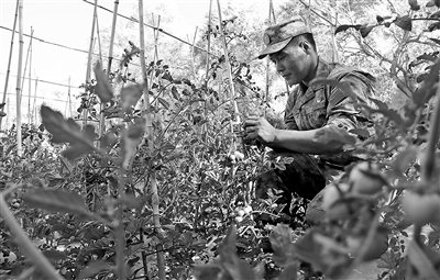 与此同时,一茬茬的西红柿、茄子、青菜也成了温室大棚里“高产作物”。在此之前,受戈壁地质影响,棚内蔬菜种植一直难以提高产量。温国营没有被困难吓倒,休息时间都“泡”在大棚中研究肥料、菜籽和土壤。一次休假回家,他报名参加当地种植班学技术,妻子责怪他不着家、不靠谱,他却笑着说:“在连队种活西红柿,这可是最重要的事、最靠谱的事。”