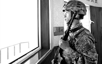 执勤哨所上方,繁星点缀着夜空。时针即将指向2点钟,下士王天迎来了换哨时刻。