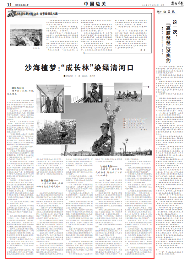 “树能长多高多大,取决于它的根能扎多深。”班长仿佛听到了他的心声,在一旁轻轻说了这样一句话。王子洋也在那一刻暗下决心,要在这片戈壁滩上扎根下去,幻想着自己有一天会倚靠着这棵树的树干,在茂密的树冠下乘凉。