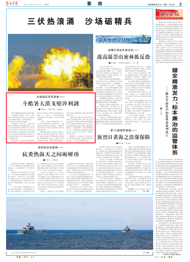 “把高温当作‘磨刀石’,有助于锤炼官兵打赢本领。”该旅领导介绍,入伏以来,他们科学制订训练计划、从难从严设立训练目标,将多支机动分队拉至野外陌生地域,在高温条件下组织实弹射击、空地对抗等高强度综合训练,深挖人装结合潜能,实打实探索高温条件下的组训方法。