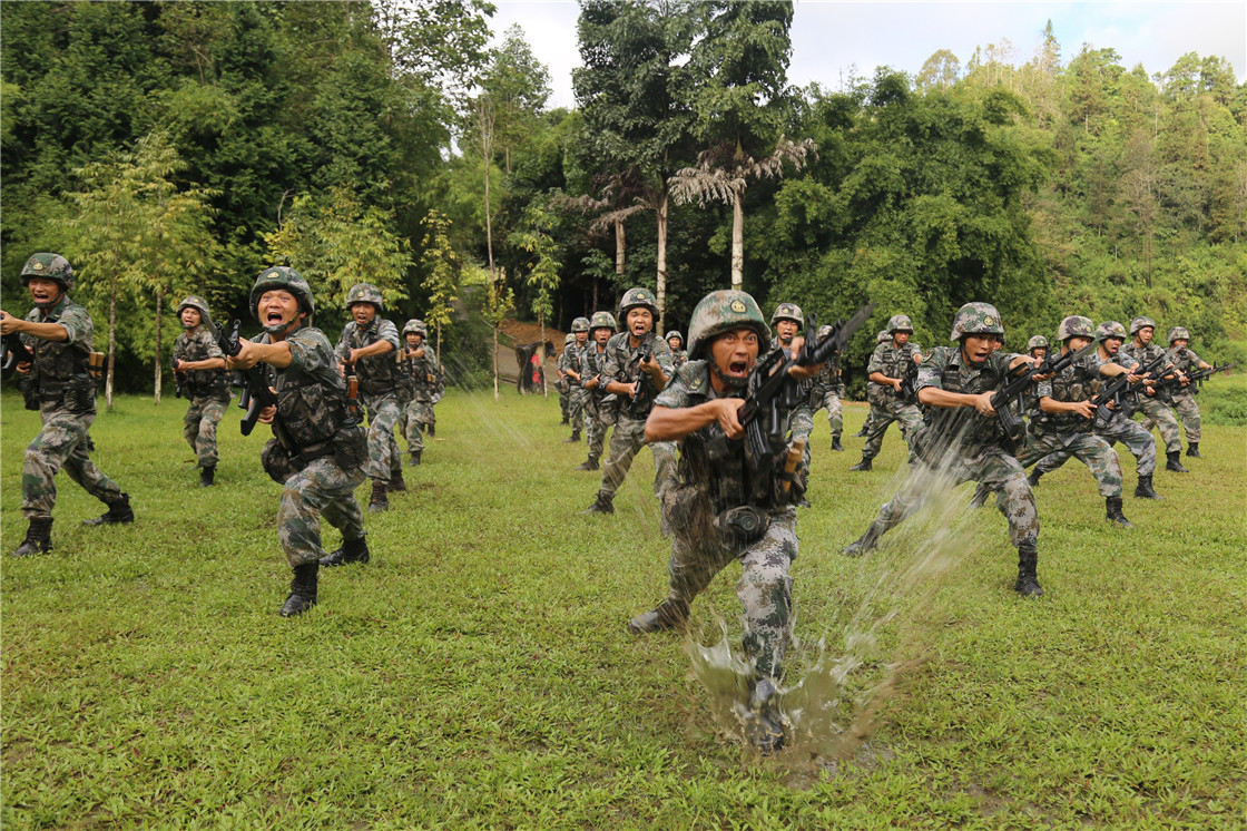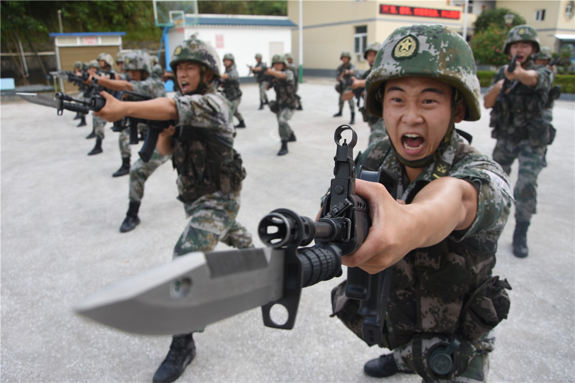 近日,在南部战区陆军某边防旅举行的一场学练武术观摩会上,百人刺杀操、传统武术等课目演示以威猛的动作和腾腾杀气成为一道独特风景。