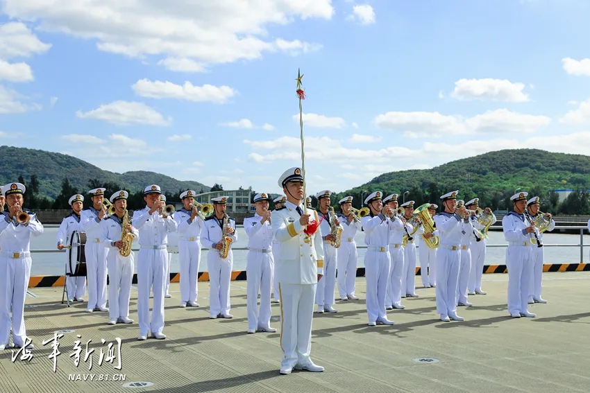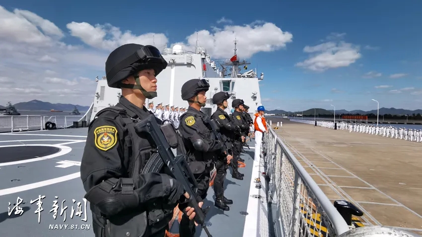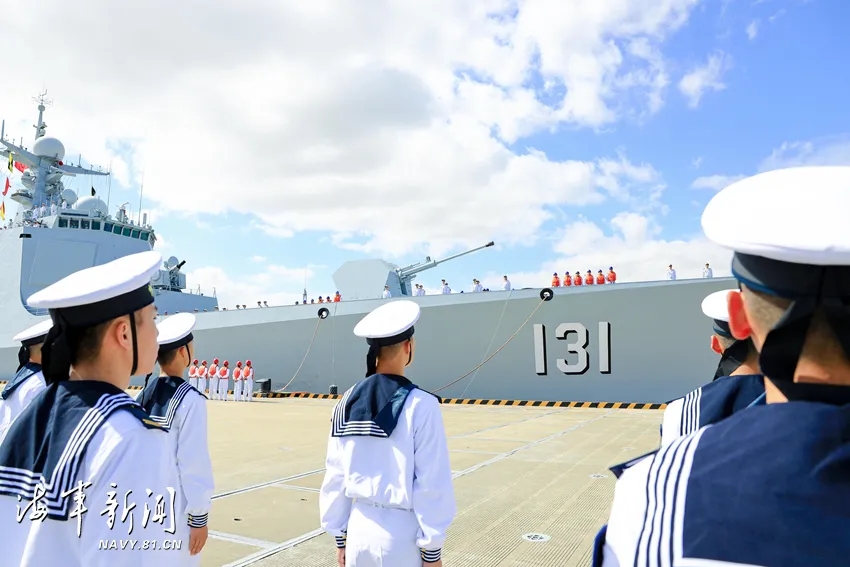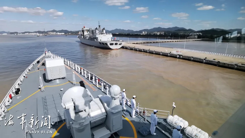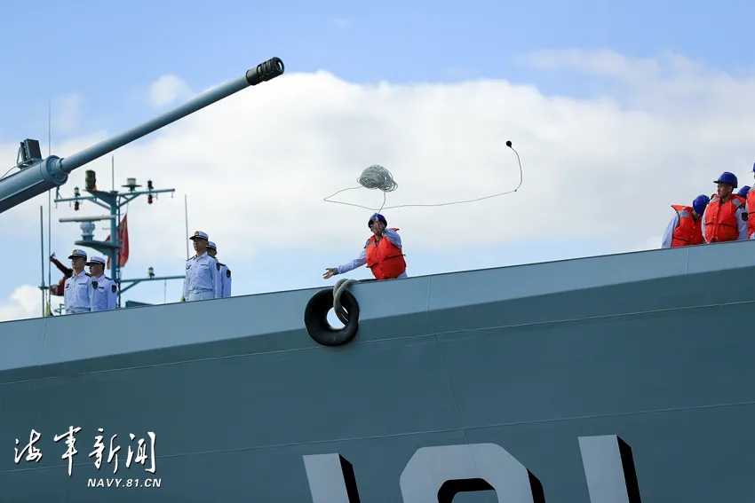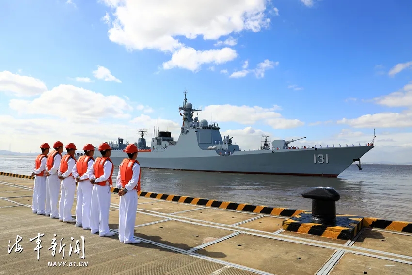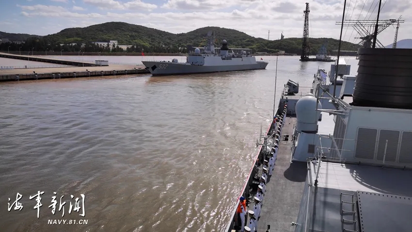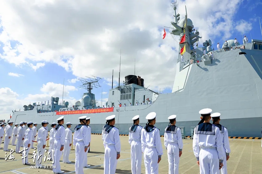 东部战区海军为护航编队凯旋举行了欢迎仪式。战区海军领导和官兵代表到码头迎接。