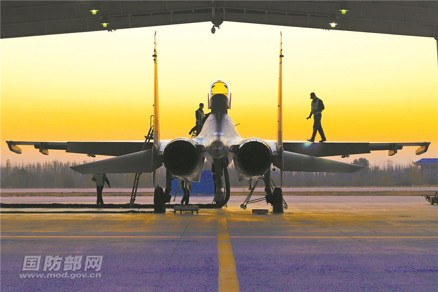 10月23日,西部战区空军航空兵某旅组织开展远程机动训练。图为机务人员检查飞机。马 鹏摄