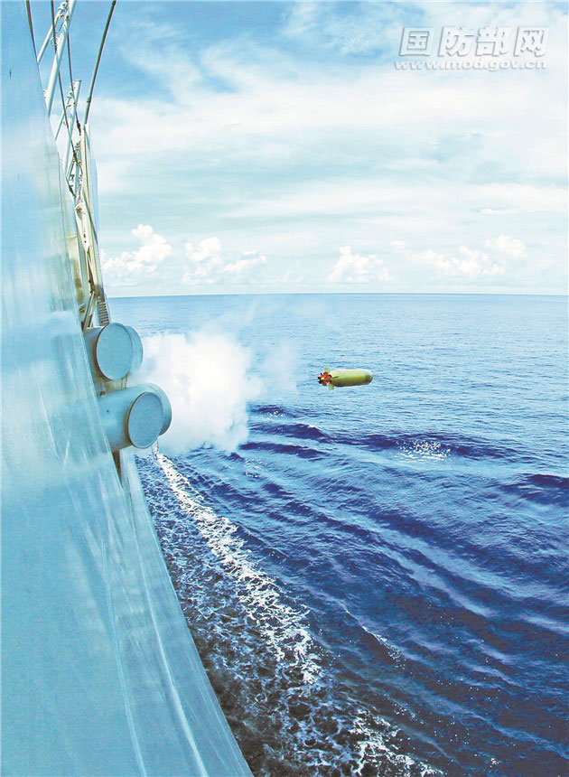 10月中旬,南部战区海军某护卫舰支队在某海域开展实弹射击训练。图为实射鱼雷。解放军报特约记者 薛成清摄