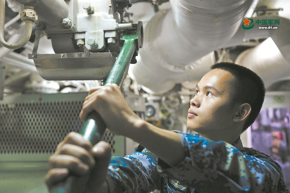 韦永乐至今记得第一次进入舱底的情形——“嘭”地一声,他迎面撞上了横在头前的管路。还没等缓过神来,他的半只脚又踩入了地上的水洼……如今,面对各种恶劣的海区环境,韦永乐可以有条不紊地操纵每一个阀门,顺利执行任务。