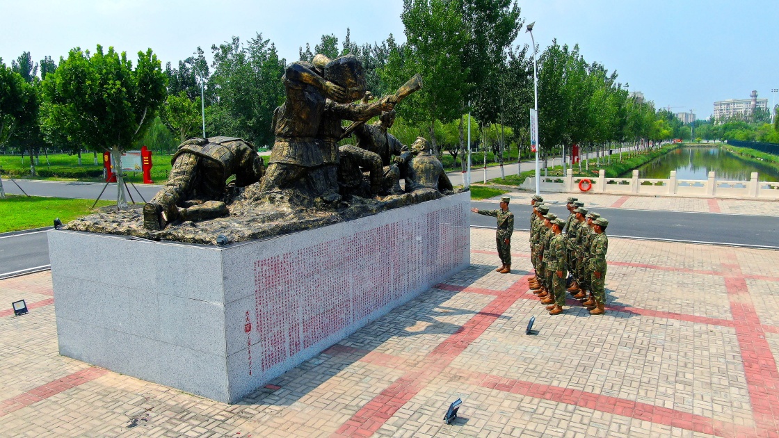 夏日余晖穿过云隙,斜射到中部战区陆军第81集团军某旅英雄广场的“松骨峰阻击战”雕像上,熠熠生辉。