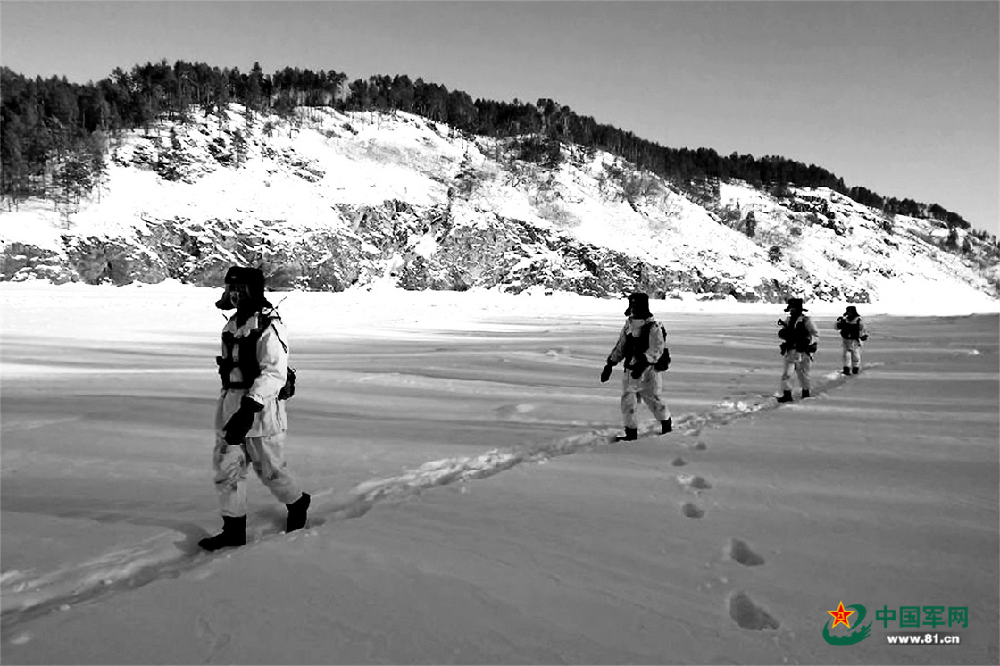 列兵邹龙辉今年初刚参与巡逻,每次执勤,巡逻队都要沿着结冰的额尔古纳河前行。班长告诉他,以往冰上巡逻,一旦遇上冰面塌陷,后果不堪设想。