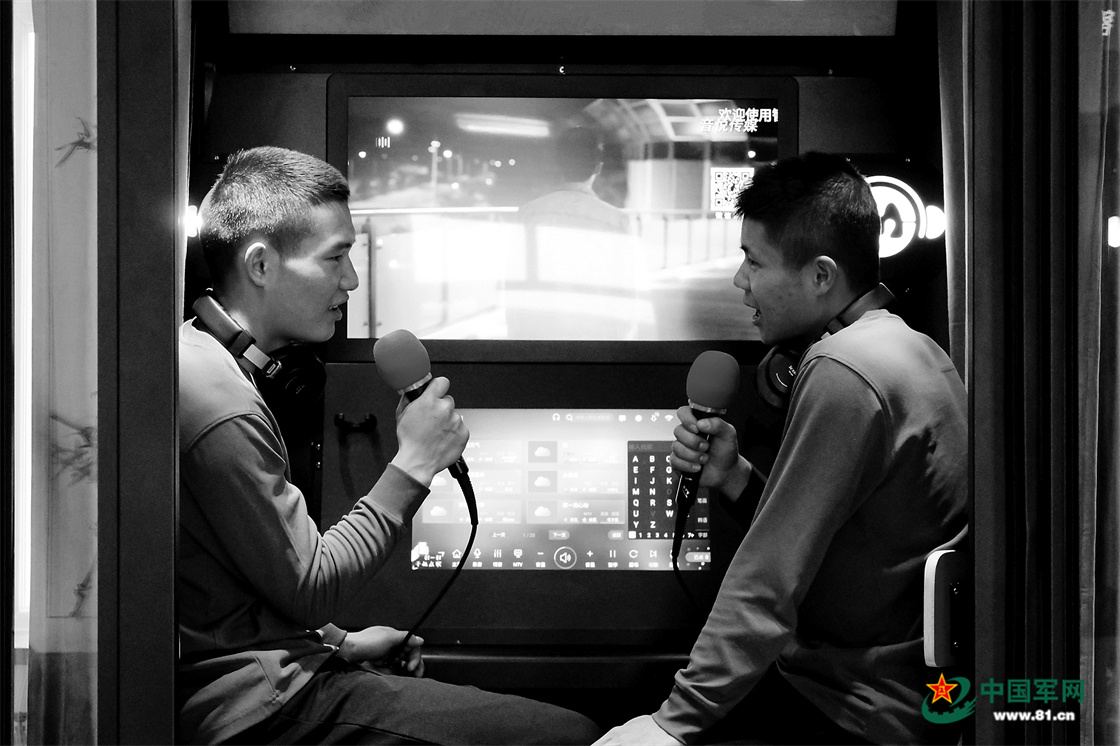 正在“军营唱吧”欢唱的战士。穆林 摄