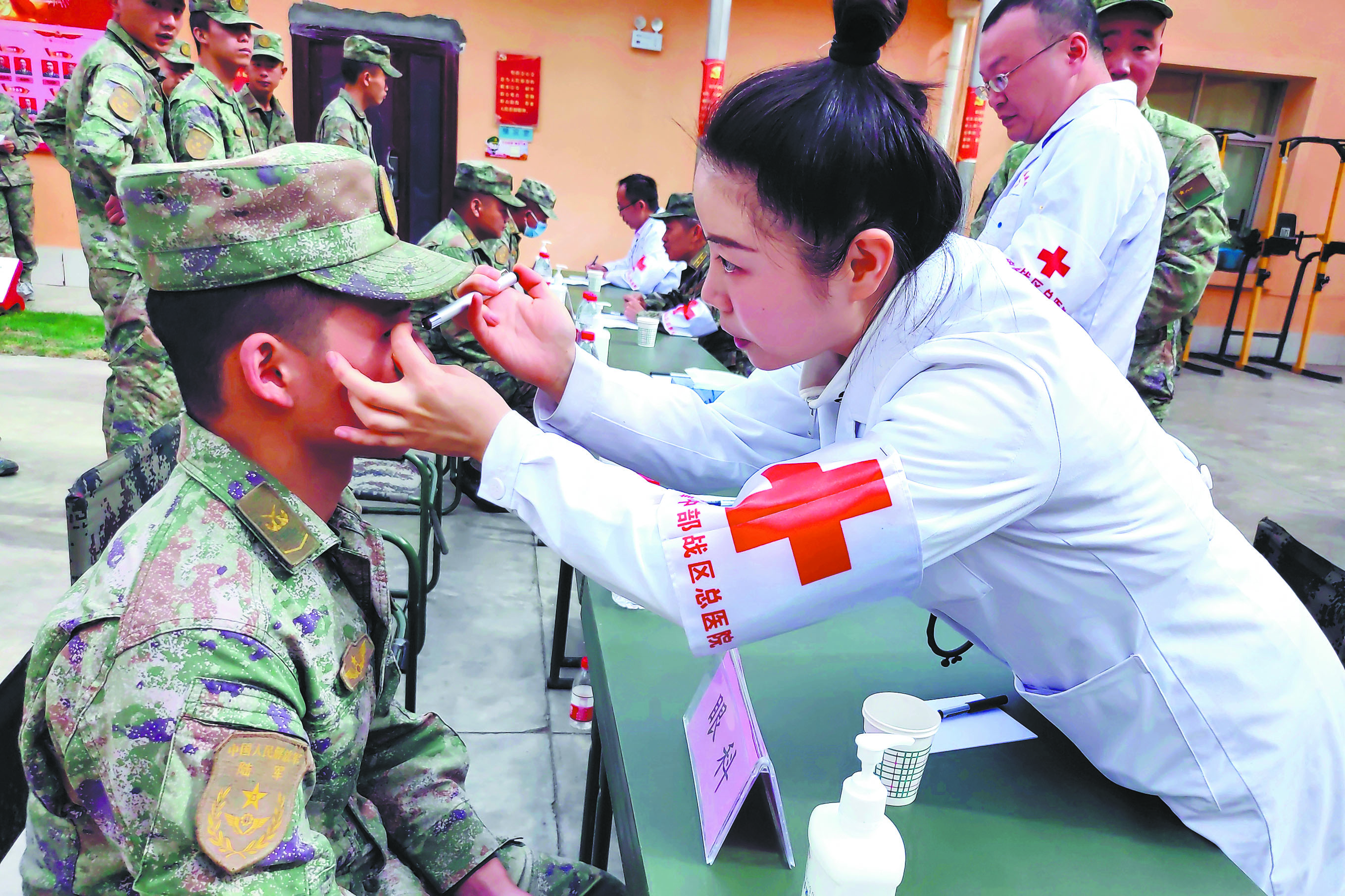 中部战区总医院专家医疗队到基层巡诊,一位军医为战士诊疗。谭志正、苗长昊摄