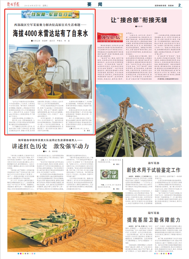 据介绍,过去,受阵地海拔高、山顶岩层厚、打井技术要求高等因素影响,铺设自来水管线难度很大。