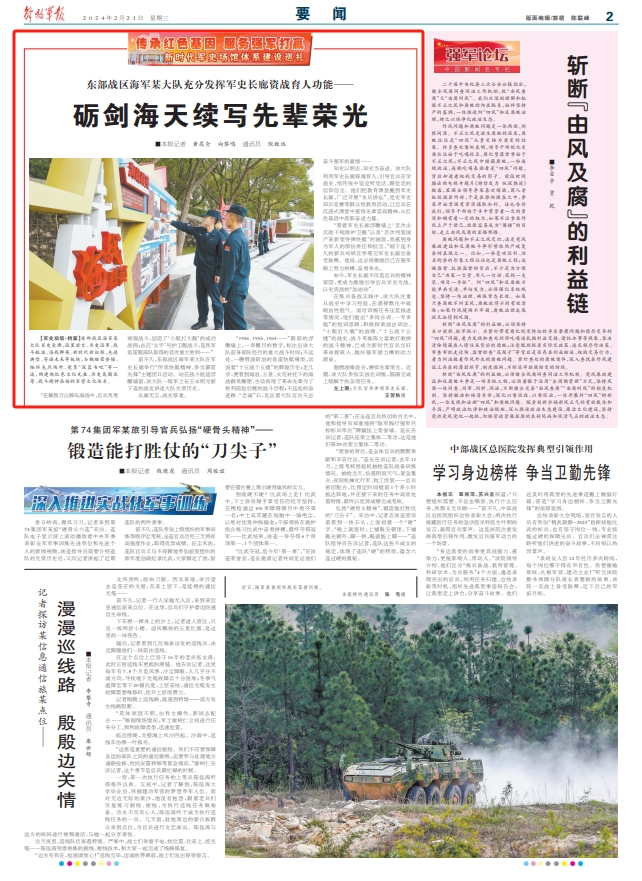 在练兵备战实践中,该大队注重从战史中学习经验,在潜移默化中砥砺血性胆气。面对训练任务压茬推进等情况,他们提出“多岗合训、一专多能”的组训思路,积极探索战法训法。“小艇打大舰”的战绩、“十五战十五捷”的战史、战斗英雄陈立富敢打敢拼的战斗精神,已成为新时代官兵当好革命接班人、跑好强军接力棒的动力源泉。