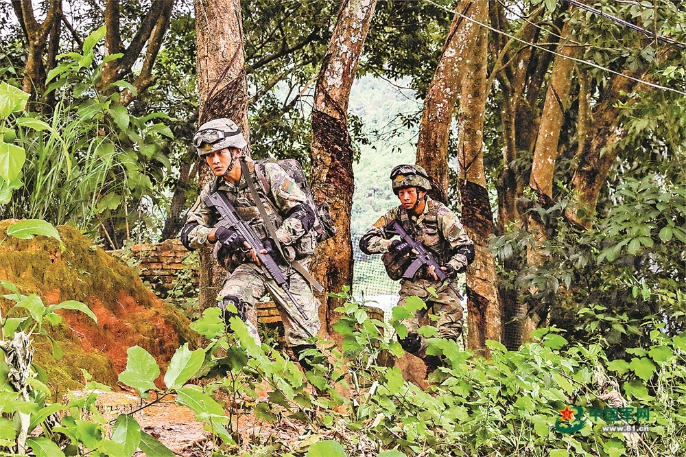 巡逻官兵穿越丛林。