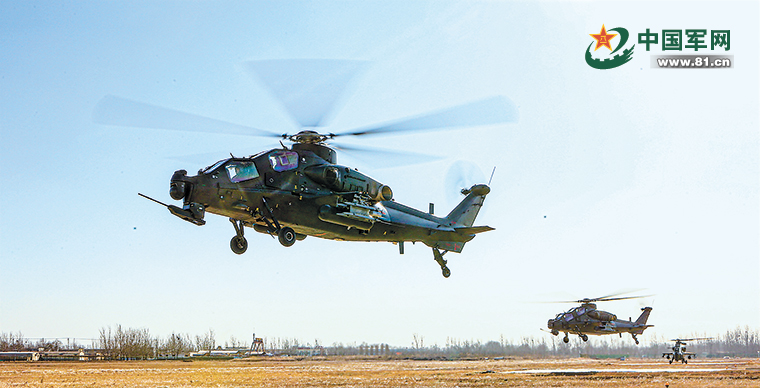 第80集团军某旅组织武装直升机开展飞行训练