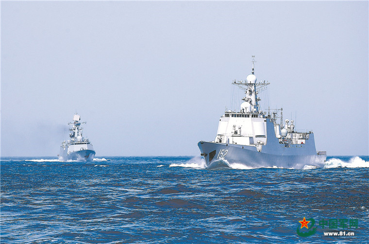 东部战区海军某驱逐舰支队在某海域开展实战化训练