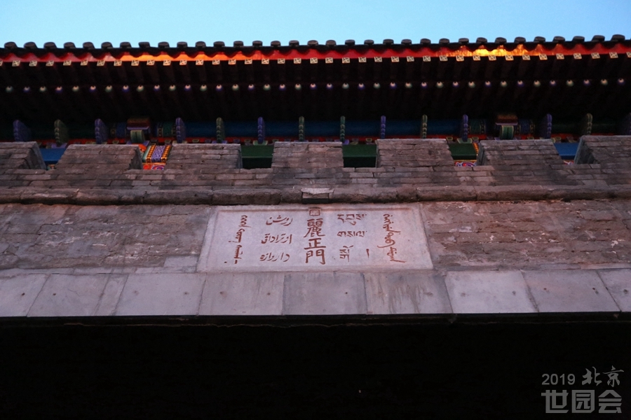 乾隆用汉、满、蒙、维、藏五种文字题写的“丽正门”石质匾额