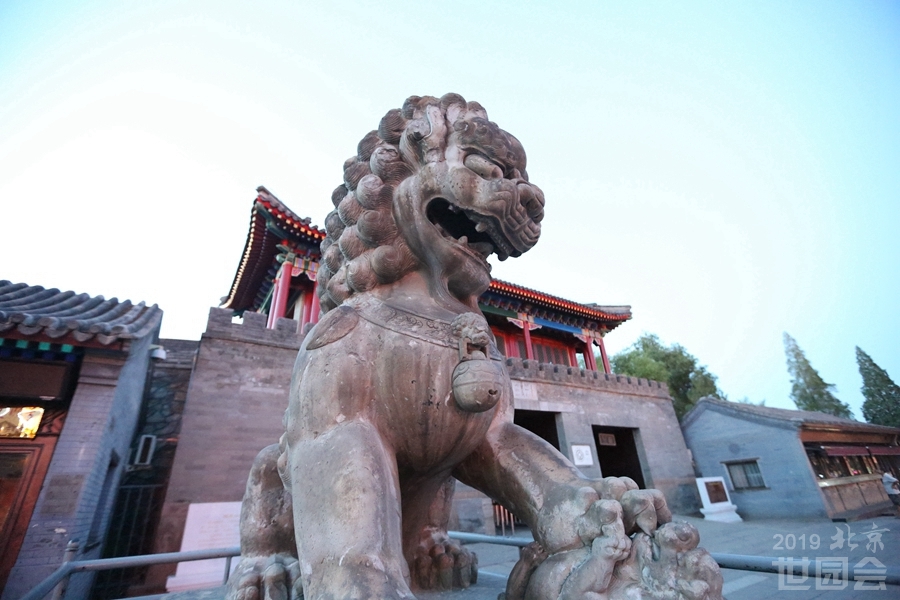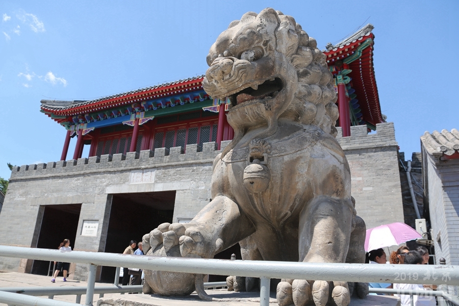 丽正门门前列一对石狮