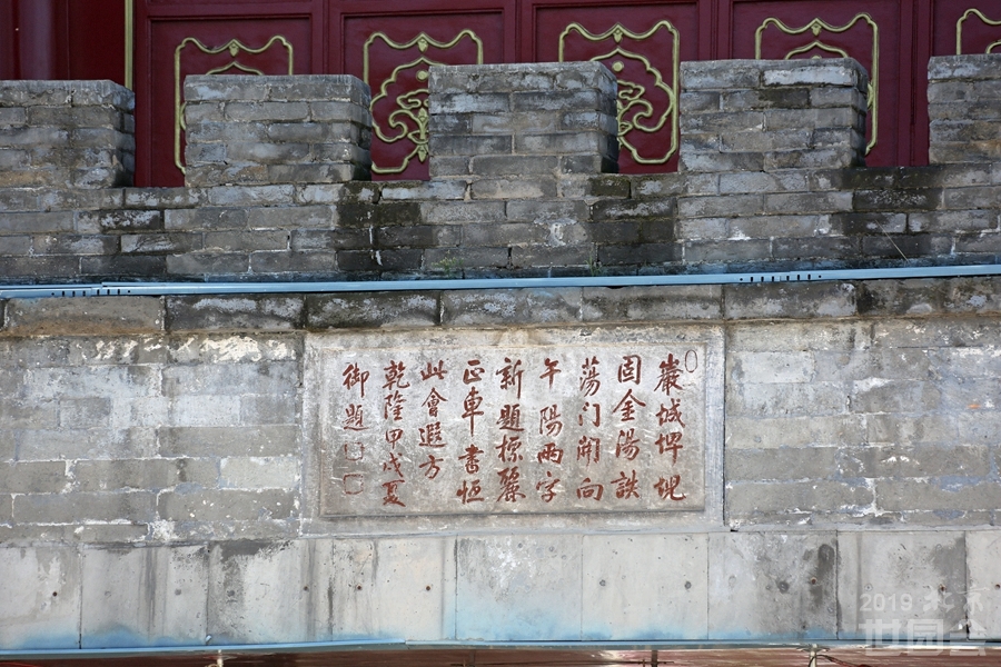丽正门中门北面的门额上刻有乾隆皇帝于乾隆十九年写的诗