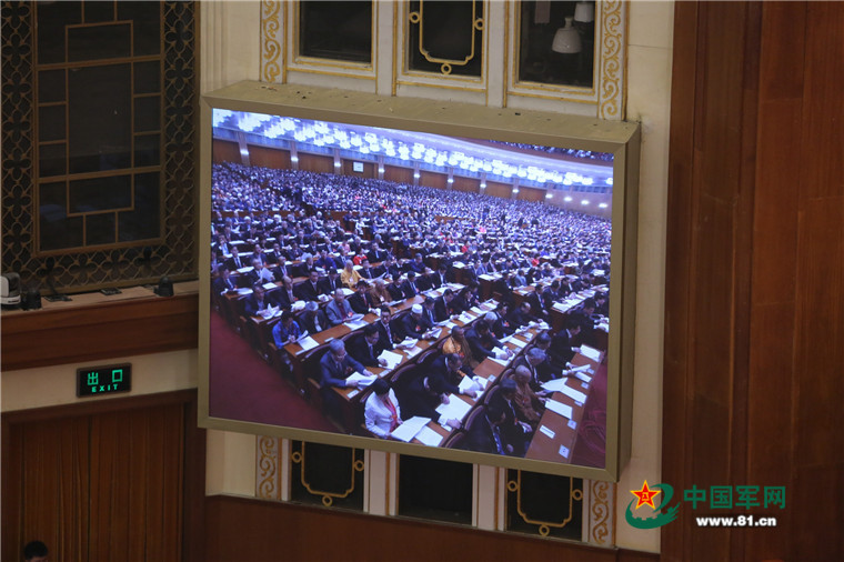 3月3日下午,全国政协十三届二次会议在北京人民大会堂开幕。这是会议现场的大屏幕实时播放现场画面。中国军网记者 孙智英 摄