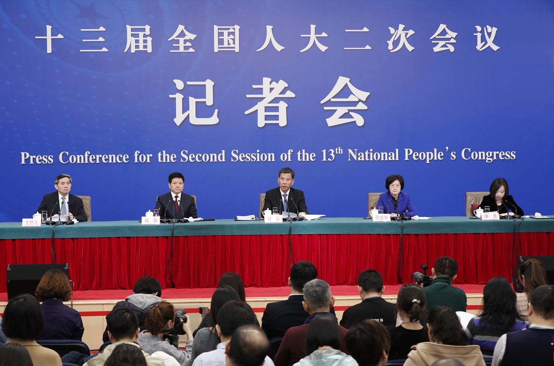 3月7日,十三届全国人大二次会议新闻中心举行记者会,邀请财政部部长刘昆,副部长程丽华、刘伟就“财税改革和财政工作”相关问题回答中外记者提问。新华社记者 沈伯韩 摄