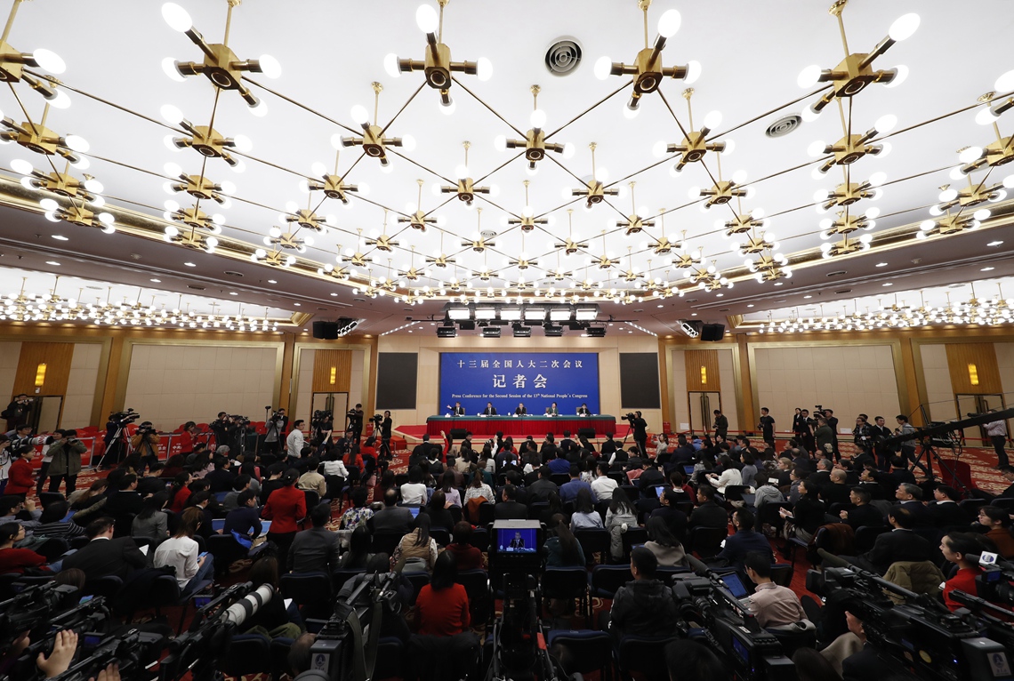 3月11日,十三届全国人大二次会议新闻中心举行记者会,邀请国家市场监督管理总局局长张茅、国家药品监督管理局局长焦红、国家知识产权局局长申长雨就“加强市场监管 维护市场秩序”相关问题回答中外记者提问。新华社记者 沈伯韩 摄