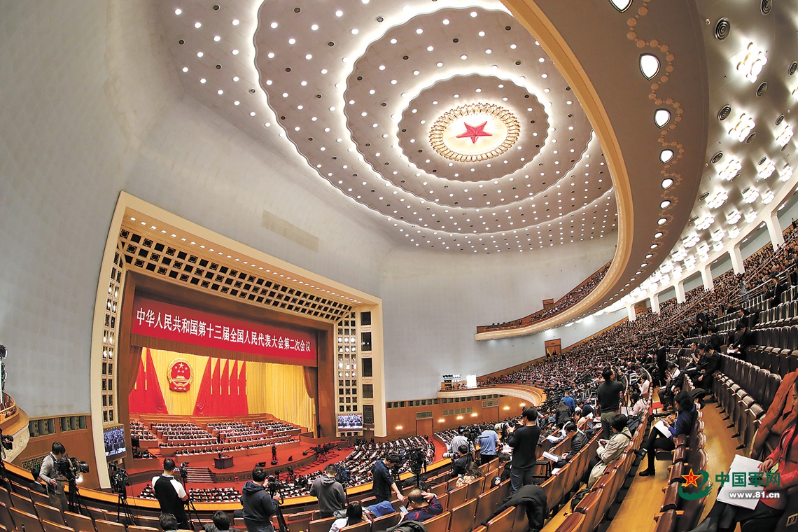 3月12日,十三届全国人大二次会议在人民大会堂举行第三次全体会议。图为大会现场。