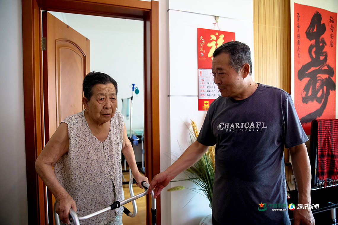 苏征南的老伴高春萍惦记老伴身体状况,她从房间里出来和记者说,苏老年纪大了,不能长时间坐着,接受一会儿采访要让他休息休息,接着和记者聊起家常,三儿子也过来一起聊了起来。中国军网记者 孙智英 摄