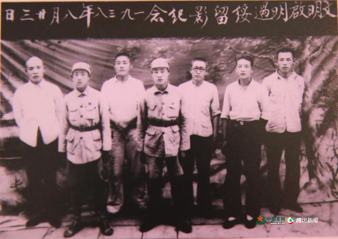 1938年8月23日,文明、启明过绥留影纪念。左二是苏征南,照片中间为苏征南的堂哥殷文明。苏征南当时的名字叫殷启明,后来因为工作需要改名苏征南,一直使用至今。这张拍摄于1938年的照片,苏老一直保存着,他和堂哥一起参军入伍的情景一直记忆犹新(翻拍资料)。中国军网记者 孙智英 摄