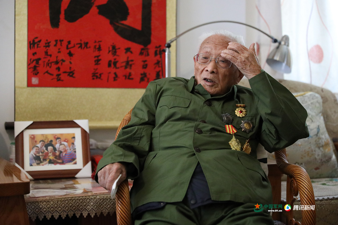 薛中天讲述上党战役中头部负伤时的情景。中国军网记者 伍行健 摄