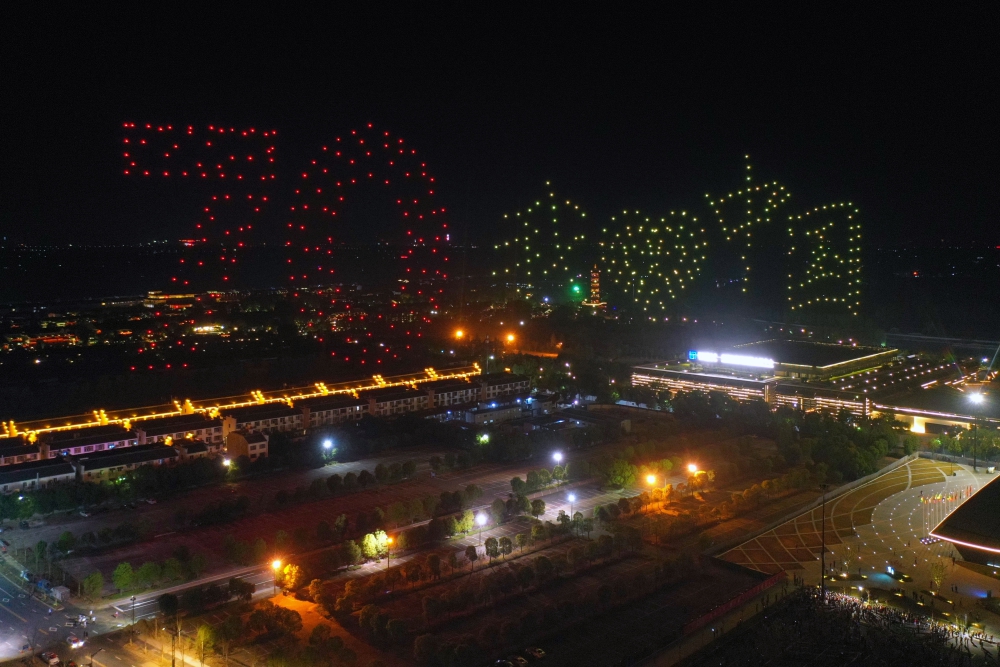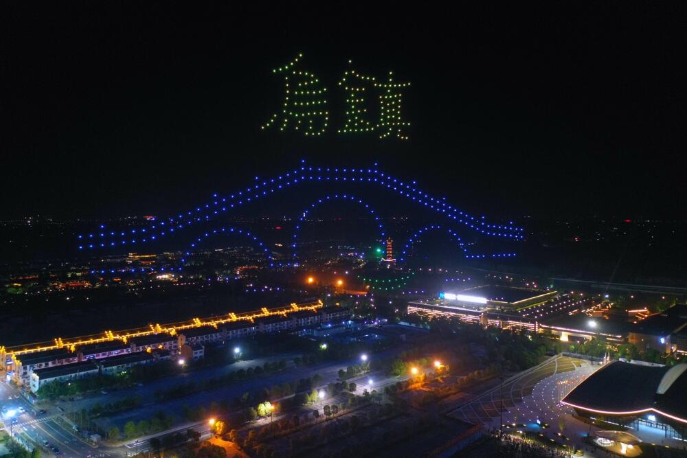 9月29日晚上,桐乡乌镇,500架无人机以天幕为舞台,在“互联网之光”博览中心上空,上演了时长约15分钟的科技光影秀。古镇夜空,500架无人机不断变换出“70我爱中国”“世界互联网大会”“我自爱桐乡”“乌镇的小桥流水”“玫瑰花开”等图案和文字,花式“表白”祖国母亲。